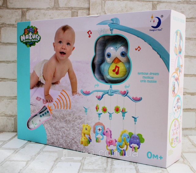 Дитяча музична карусель (мобіль) на ліжечко з пультом HL2018-81R-82R-85, Сова Синя